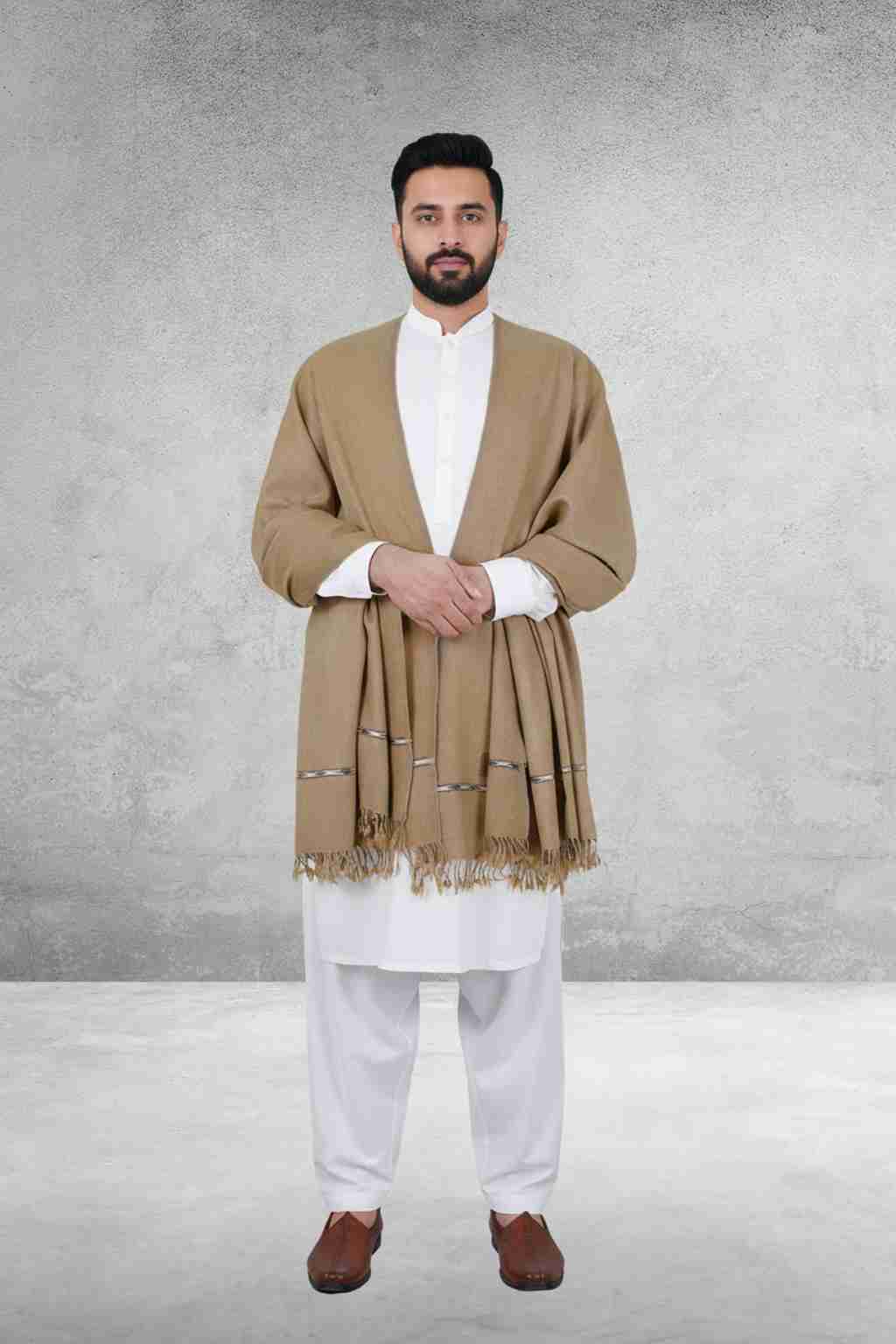 Perfect for chilly days, this soft and cozy wool shawl combines comfort with sophistication, helping you express your personality with confidence. Whether you’re dressing for a casual gathering or a formal event, this warm brown men’s shawl adds effortless style and elegance to any outfit.