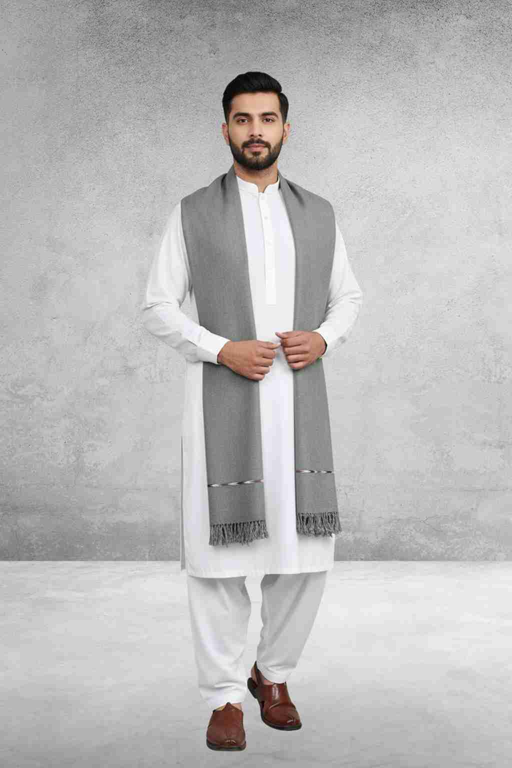The plain grey tone adds a modern, versatile touch that pairs perfectly with both formal attire and casual outfits. Whether layered over a suit, kurta, or coat, this shawl enhances your overall look with understated elegance.